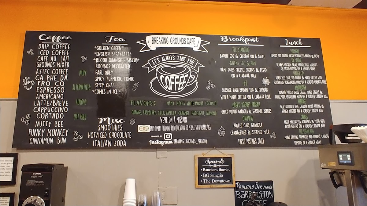 Welcome to Breaking Grounds, a charming café nestled at 67 Main St, Peabody, MA. This establishment is not just about coffee; it's a heartwarming experience where friendly faces greet you with smiles.